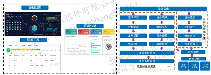 設(shè)備運(yùn)維:完成對(duì)設(shè)備運(yùn)維全生命周期的管理,包括設(shè)備臺(tái)帳、點(diǎn)檢、保養(yǎng)、維修、改造、報(bào)廢以及備品備件管理