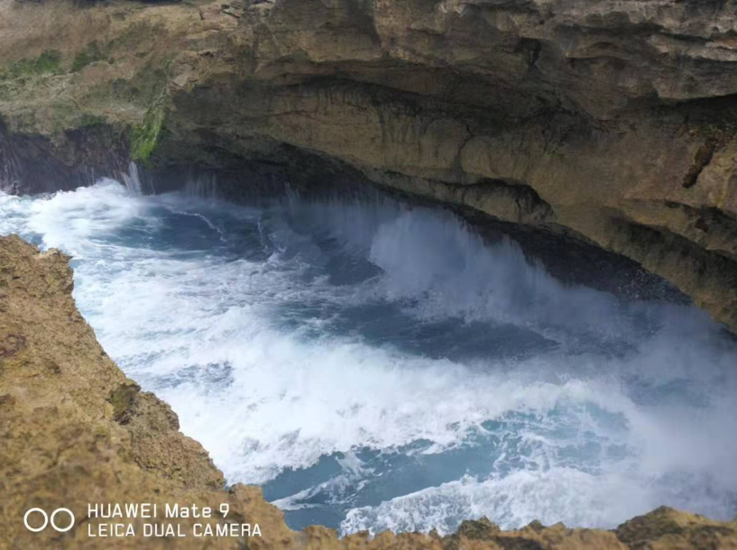惡魔的眼淚是一個小的懸崖,但因為常年的海水沖刷,形成了一個開口圓形的形狀。懸崖底端也有被海水沖刷出的洞穴,因為壓強的擠壓,漲潮的時候海浪在這里被沖出幾十米高。我們運氣很好看到在陽光折射下水霧中的彩虹,而且還拍了不少美麗的照片。