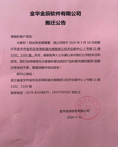 今天金辰搬家了, 18年的奮斗、18年的汗水、18年的執(zhí)著將在這里繼續(xù)前行;感謝所有金辰的客戶朋友們一路的支持和陪伴,我們將繼續(xù)為廣大新老客戶提供更多更優(yōu)質(zhì)更完善的服務(wù),繼續(xù)書寫金華金辰的華彩篇章!